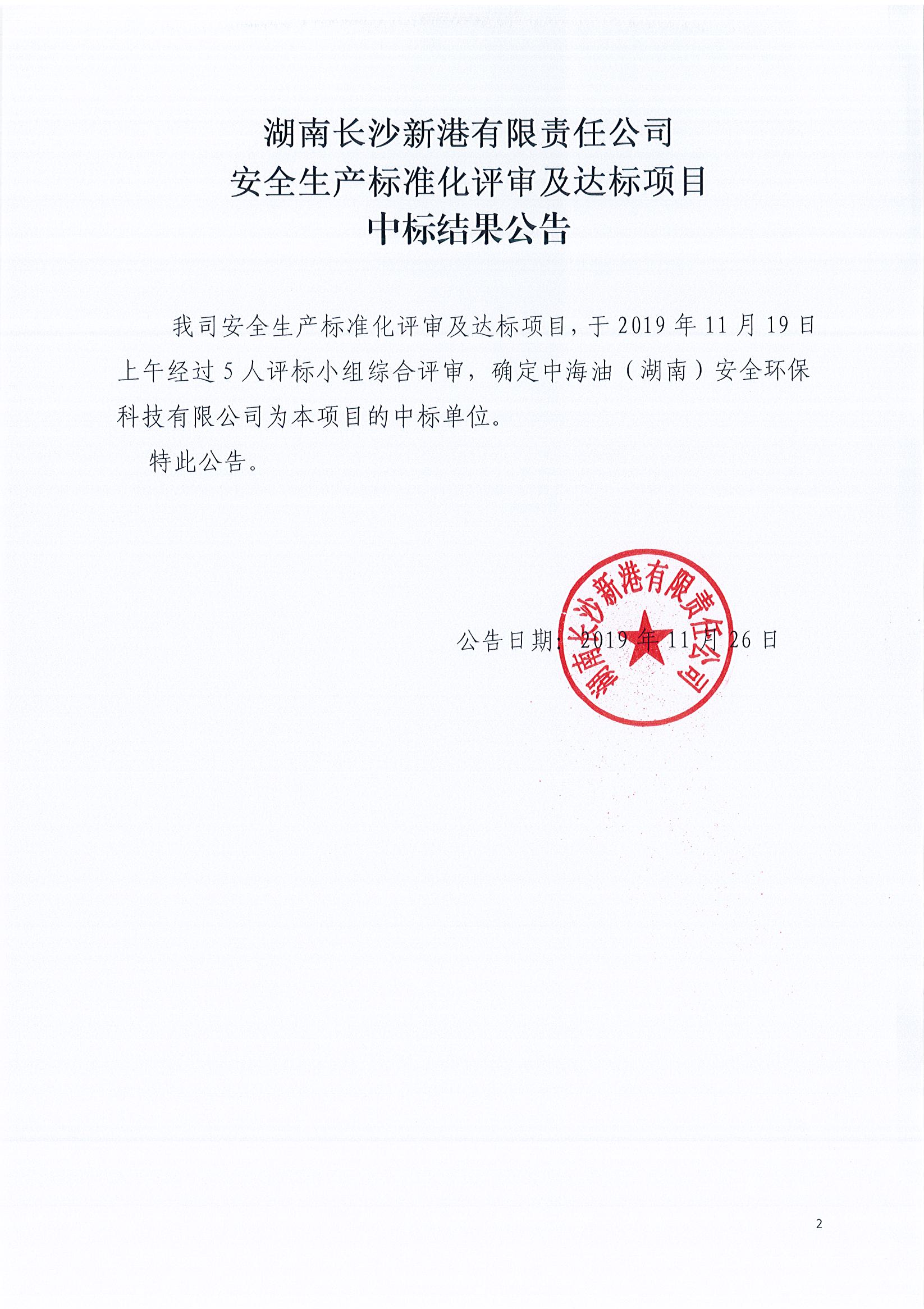 安全生產(chǎn)標準化評審及達標項目中標結(jié)果公告