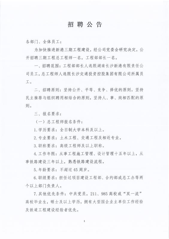 湖南長(zhǎng)沙新港有限責(zé)任公司招聘公告