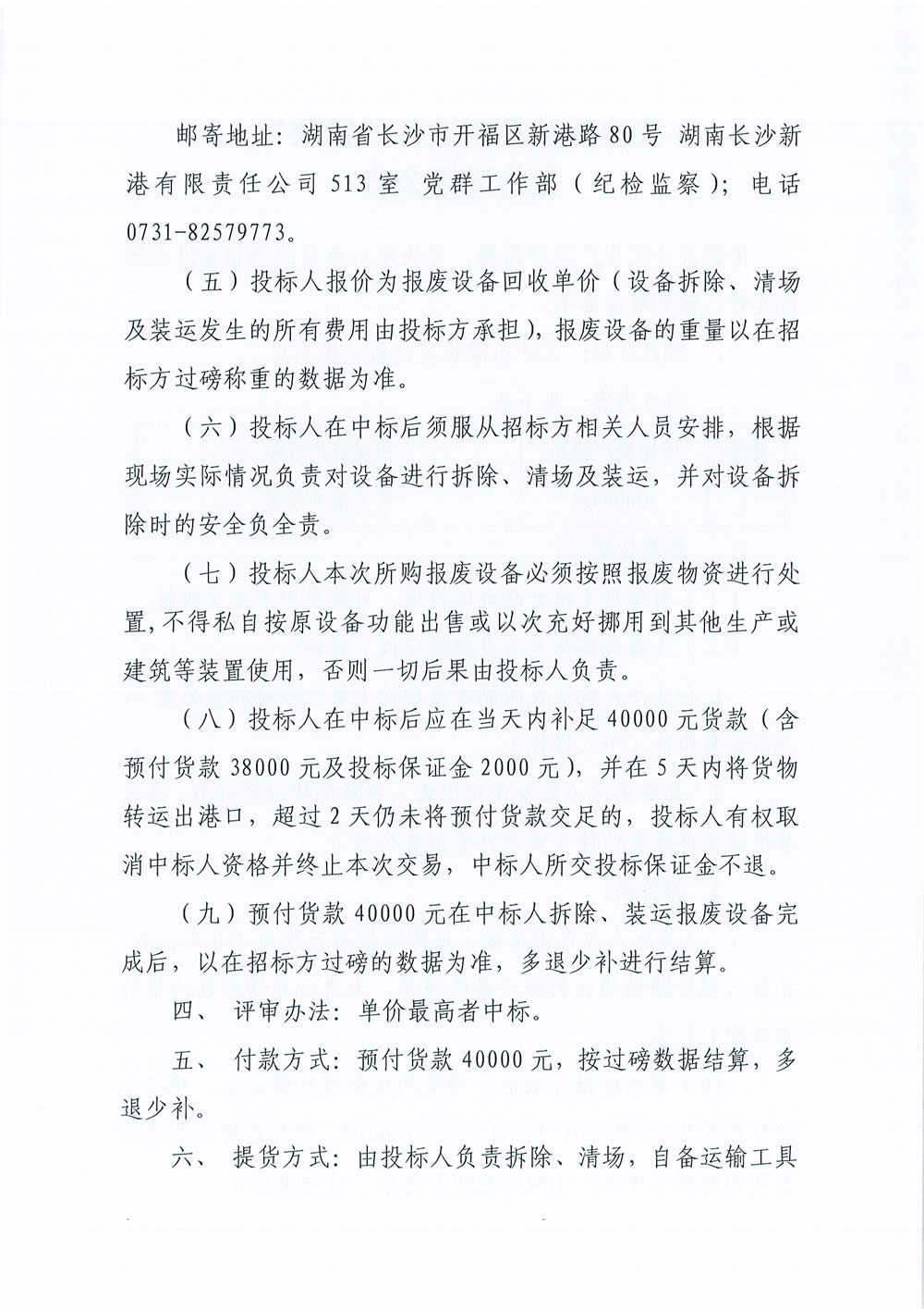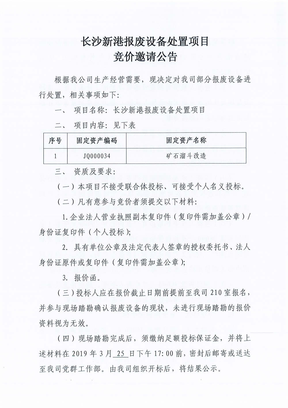 長沙新港報(bào)廢設(shè)備處置項(xiàng)目競價(jià)邀請公告