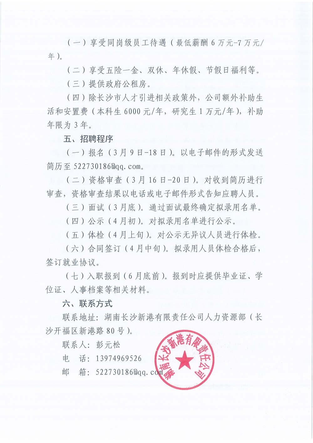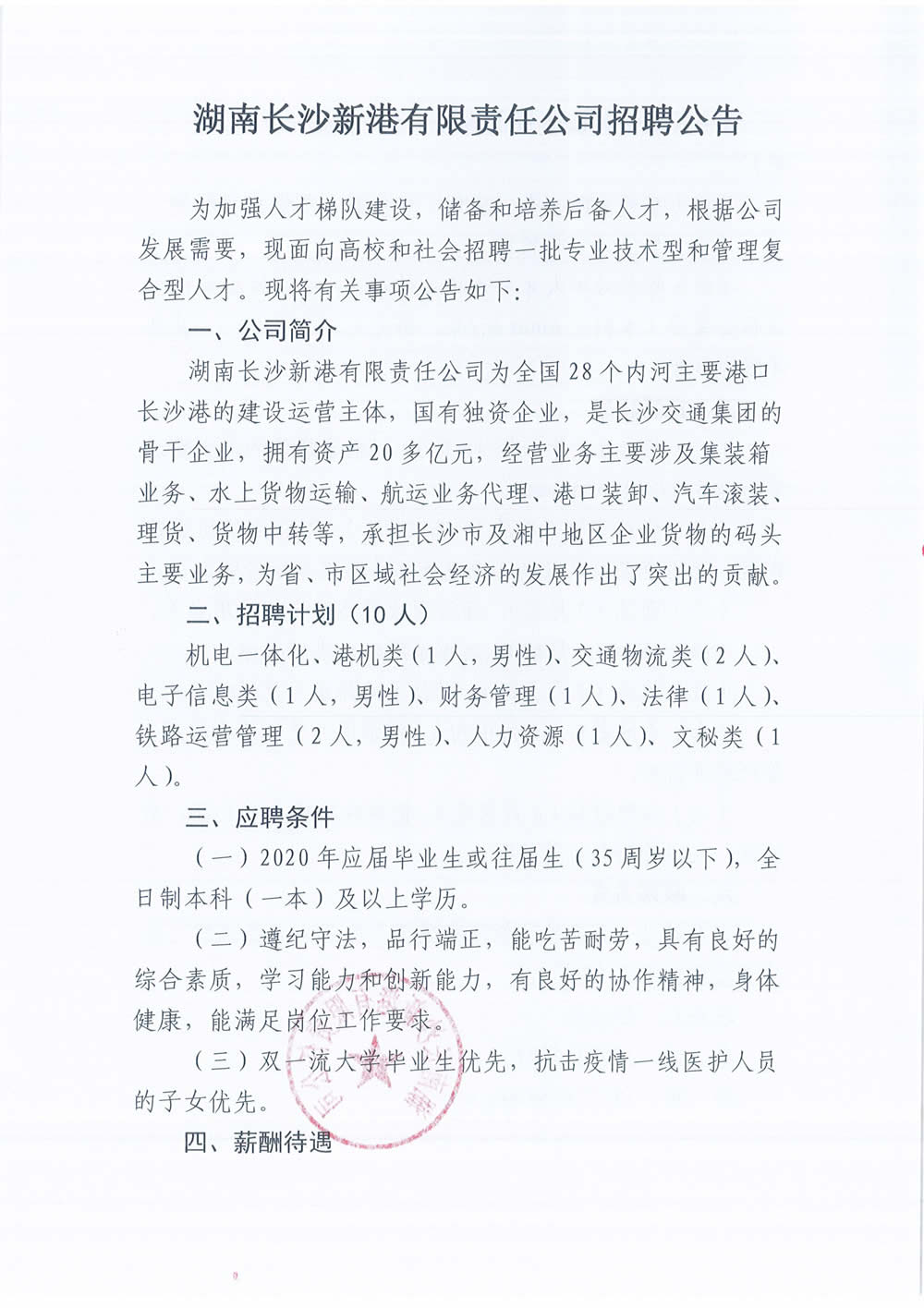 湖南長沙新港有限責任公司招聘公告
