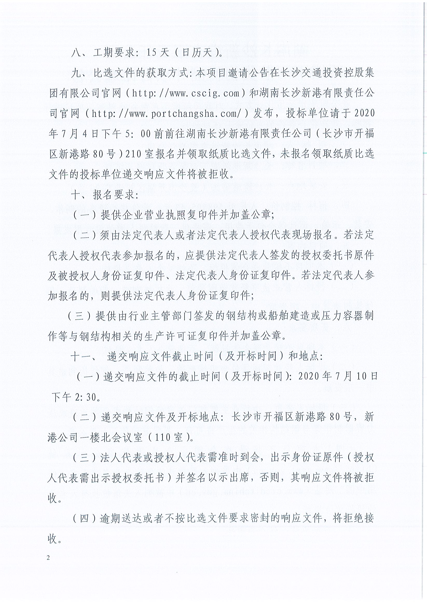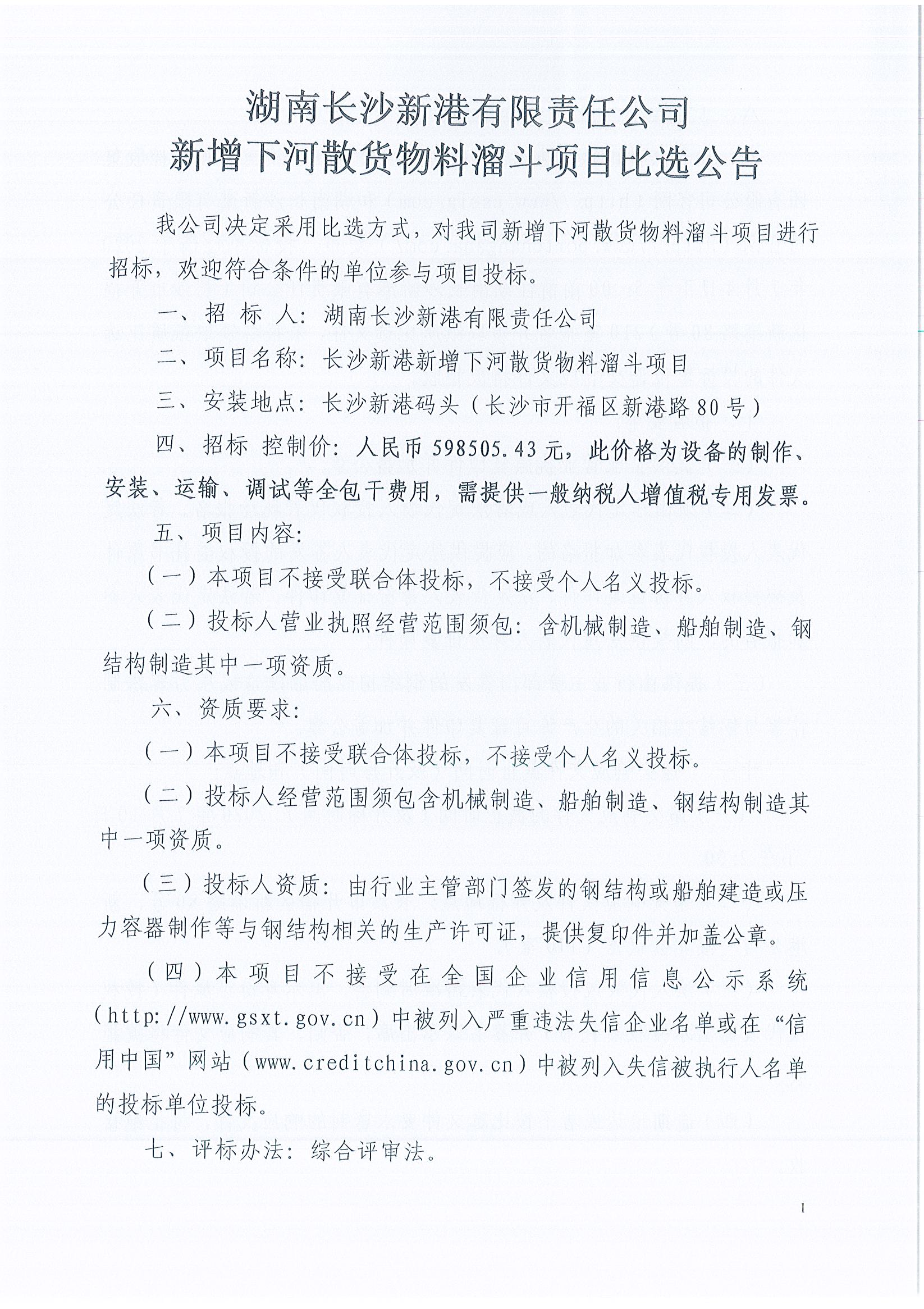 湖南長沙新港有限責任公司新增下河散貨物料溜斗項目比選公告